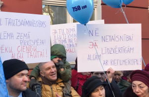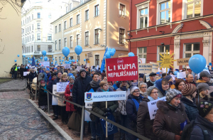 В акции поучаствовали около 2000 учителей со всей Латвии, о чем свидетельствовали их плакаты с названиями самоуправлений и учебных заведений.