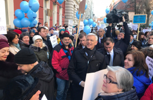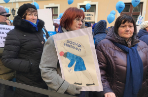 В руках участники держали акции синие шарики с надписью «750 евро» - это сумма за ставку, которую согласно графику учителя должны получать с 1 сентября этого года.