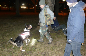 Задачей группы по ментрейлингу было c отложенного старта найти потерявшегося человека, пройдя по следу и удерживая вектор движения. Задачей группы по территории - найти двух пропавших людей в тёмное время суток. Также работать, не обращая внимание на отвлекающие факторы. Все собаки отлично справились с задачей, несмотря на большое количество бегающих в парке людей и собак.