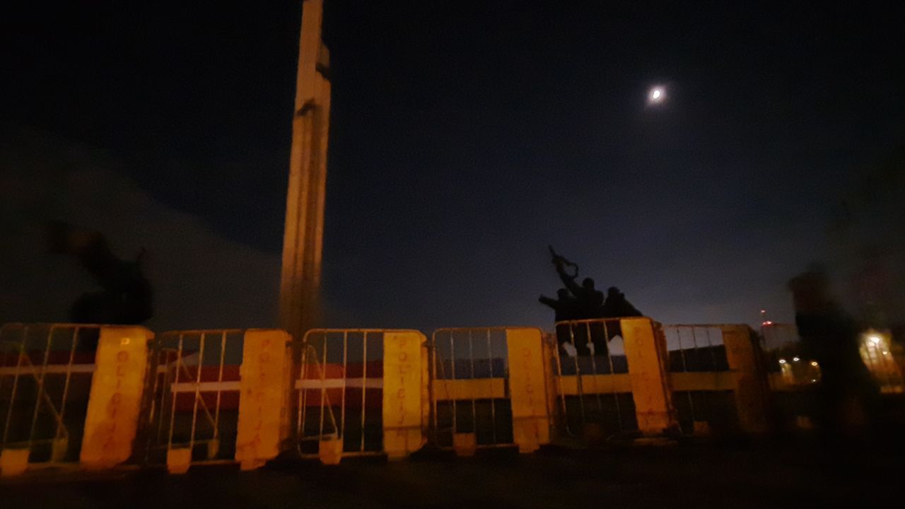 По всему периметру были установлены полицейские заборы, доступным остался лишь центральный подход к монументу.