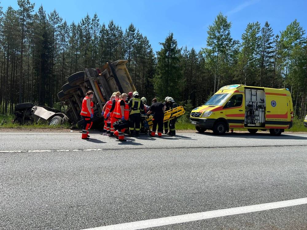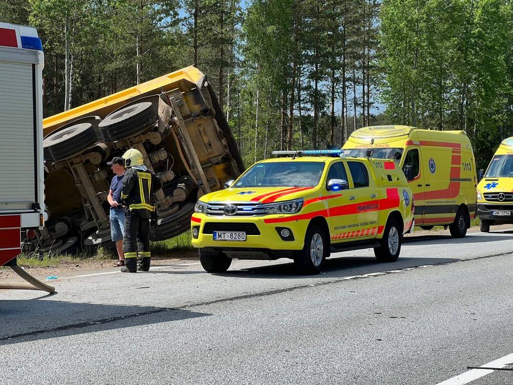 В 12:40 в Государственную полицию поступило сообщение о лобовом столкновении грузовика Volvo и автомобиля Mercedes Benz на трассе Тинужи-Кокнесе.
