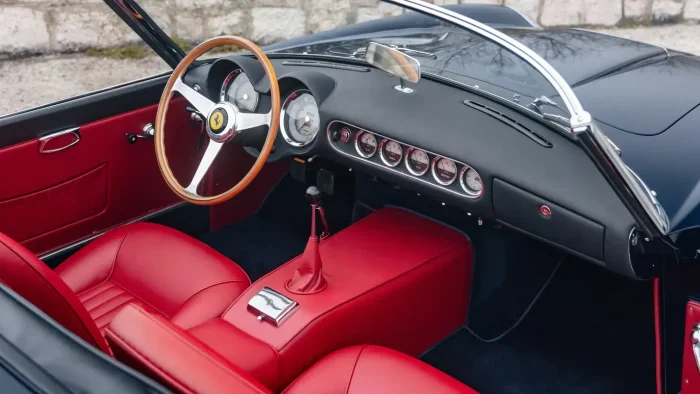 Этот автомобиль - редкий гость даже на самых закрытых закрытых парковках мира. Перед нами один из 56 экземпляров на укороченной базе, сошедший с конвейера 26-м по счету. Его история началась в сентябре 1961 года, когда блестящий кузов впервые представили публике на автосалоне во Франкфурте. С тех пор жизнь этого спайдера напоминала захватывающий роман: он нежился под солнцем Рима, затем на тридцать лет обосновался в США, чтобы в итоге триумфально вернуться в Европу.