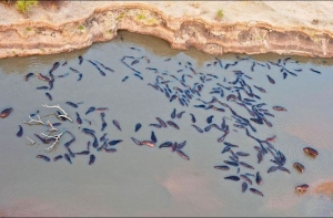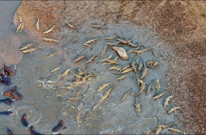 Более ста крокодилов против полчища бегемотов - свидетелем эпичного противостояния на реке стал фотограф Марк Мол во время утреннего полета над Национальным парком в Замбии.