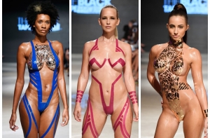 На завершившимся показе Miami Swim Week наибольший ажиотаж вызывала необычная коллекция купальных костюмов. Модели дефилировали по подиуму практически голыми, а «стратегические места» были прикрыты кусками самой обычной изоляционной ленты.