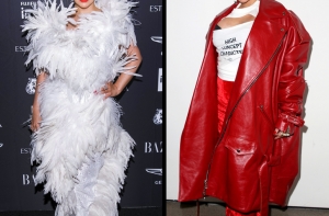 Певица всегда любила экспериментировать с образами, но порой это переходит все границы. Хотя стоит признать, что платье в пол с многочисленными перьями смотрится не так странно, как комплект из бархатной юбки, объемного плаща, майки, черного бюстгальтера и сапог в стиле 90-х.