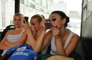 Для большинства женщин является обычным делом поправить макияж в автобусе, на лавочке или за рабочим столом - но этого делать нельзя. Даже если вы проходите мимо зеркала в людном месте - это не повод достать помаду и начать подкрашиваться. Максимум, что допустимо сделать на людях - немного подправить прическу, но при этом не расчесываться. Все остальные манипуляции по наведению красоты допускается совершать исключительно в стенах туалетной комнаты.