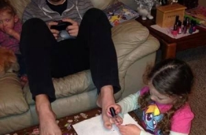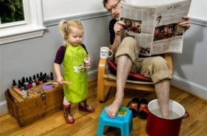 Отличная коллекция фотографий, демонстрирующих смекалку и сообразительность мужчин, столкнувшихся с необходимостью посидеть с ребёнком в отсутствие жены.Маленькие дети, как вы увидите из этих фотографий, совсем не мешают папам заниматься своими повседневными делами, будь то любимая видеоигра, чтение книги или просмотр телевизора. И они всегда выйдут из ситуации, если нужно надеть на ребёнка большие наушники, сделать хвостик дочери или покатать на качелях своего малыша, не вставая со стула!