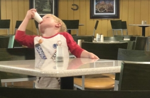 Женщина разговаривала по телефону с того момента, как зашла в кафе, пока ее ребенок бегал вокруг и делал это с солонками на столах