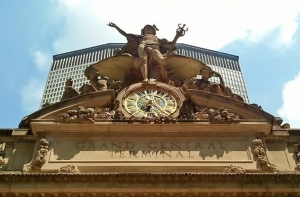 Этот, наверное, самый кинематографичный вокзал был построен в начале XX века и полон ослепительных архитектурных деталей. Начиная гигантскими часами Тиффани на одном из фасадов и заканчивая куполообразным золотисто-лазурным потолком, окрашенным астрономическими фигурами и россыпью звезд.