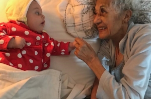 Малышка впервые видит свою прабабушку