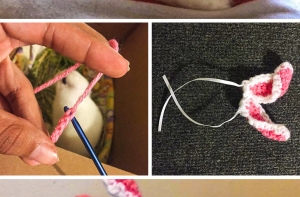 Заботливая хозяйка связала ушки для кролика