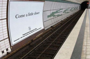 Гениальное маркетинговое решение или попытка обратить на себя внимание любой ценой? Дело в том, что этот постер, расположенный в далеко не безопасном месте, мелким шрифтом предлагает услуги похоронного бюро. Чтобы прочесть его адрес, действительно нужно подойти поближе.