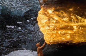 Ледяная пещера в Исландии на закате