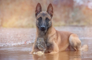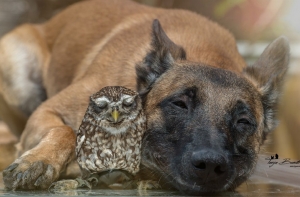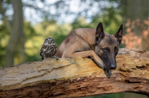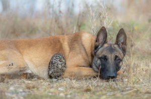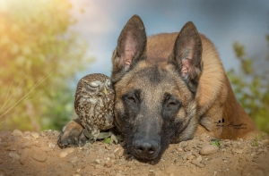 Немецкий фотограф Таня Брандт создала серию фотографий, показывающую трогательную дружбу между 2-летней бельгийской овчаркой и крошечной совой по имени Наполеон. На это у нее ушло несколько лет.