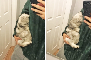 Это Пиро, он любит вот так сидеть на руках и засыпать
