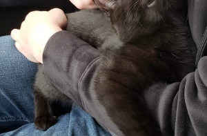 Котенок, которого забрали из приюта, мурлыкал всю дорогу домой