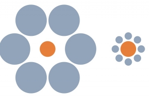 Внимания стоит и иллюзия Эббингауза о восприятии относительных размеров.