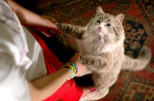 Поздно вечером, тишина… С улицы доносится робкое мяуканье, через пару минут собрался уже кошачий квартет. Открываю балкон, смотрю вниз: из темноты глазеют 4 пары зеленых огоньков. И тут сверху летит дождь из колбасы. Слышу незнакомый мужской голос: «Приятного аппетита, хвостатые, завтра ресторан в 8 открывается!»