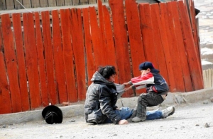 Турок дразнит голодающих армянских детей куском хлеба во время геноцида армян в 1915 году