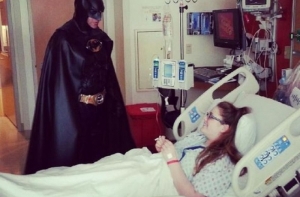 Мужчина в костюме Бетмена посещает больных детей в канун Рождества