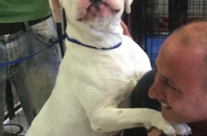 Воссоединение с хозяином спустя 7 месяцев после разлуки. Пес был доставлен в приют, отсканирован на наличие микрочипов, и «папа» сразу же пришел за ним