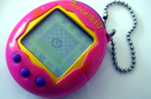 Ну и куда без тамагочи. Дети и взрослые бросали все, чтобы покормить электронное животиое или уложить его спать.