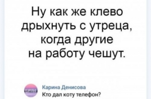 Свежая коллекция скриншотов из социального Рунета для вашего хорошего настроения!В этом выпуске: про кошачий надзор, про пацанскую месть, про женскую дружбу, про медиков на отдыхе и многое другое!Всем улыбок и позитива!