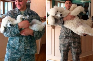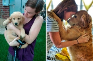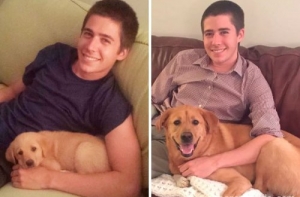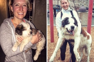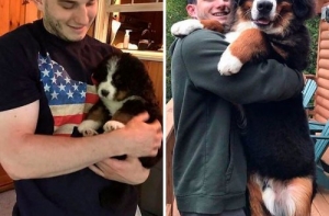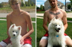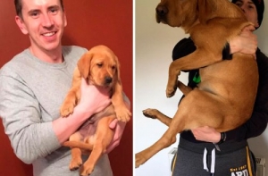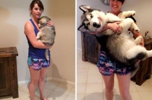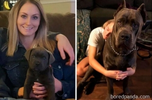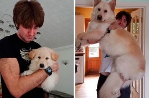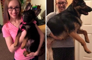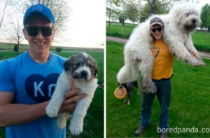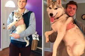 Щенки очень быстро растут! Не успеешь оглянуться, как эти неповоротливые и неуклюжие маленькие, пушистые комочки очарования превращаются в сильных, крепких взрослых собак, иногда превосходящих по росту своих хозяев.Поэтому многие владельцы собак стараются запечатлеть каждый вздох, который делают их маленькие комочки радости. И если сопоставить две фотографии - когда питомец был ещё маленьким и когда уже совсем взрослый - интересно видеть изменения, которые произошли в его внешности.А ещё такие фотографии в очередной раз напоминают нам, что нужно дорожить и уметь наслаждаться каждой минутой своей жизни!
