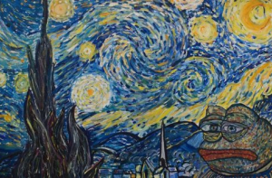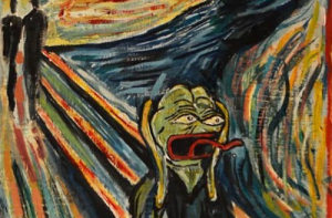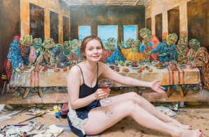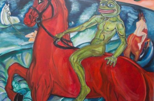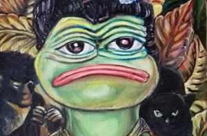 Лягушонок Пепе - это человекоподобная лягушка, которая впервые появилась в комиксе «Boy’s Club» Мэтта Фери (Matt Furie). Со временем такие известные платформы как Myspase, 4chan и Gaia Online сделали этого персонажа популярным Интернет-мемом.К 2016 году лягушонок Пепе стал восприниматься в качестве одного из символов спорного движения альтернативных правых, после чего некоторые его изображения были внесены Антидиффамационной лигой в базу символов ненависти, хотя создатель лягушонка Пепе выражал несогласие с использованием его изображения в качестве символа ненависти.Российская художница