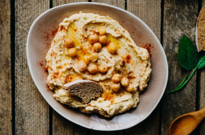 Обед: бутерброд с хумусом и сыром; салат из помидоров и лука, лепешки с медом.