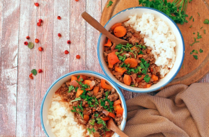 Ужин: рис, карри из тыквы, цветной капусты, моркови и кокосового молока.