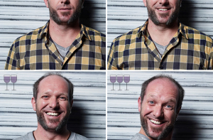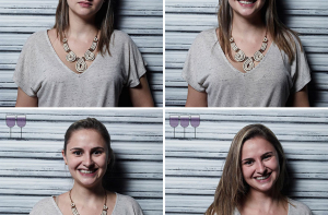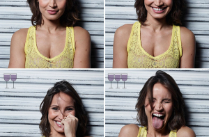 Маркос устроил импровизированную съемку, он позвал близких отдохнуть вечером от тяжелой работы и провести исследование, результаты которого задокументировал с помощью фотографий. Всего по 4 снимка на каждого человека: в трезвом состоянии, после одного, двух и трех выпитых бокалов вина соответственно. Не трудно заметить, что настроение улучшается уже от одного бокальчика, а дальше приходят раскрепощенность и настоящее веселье. Этот проект – эксперимент, но никак не пропаганда спиртного, алкоголь уместен лишь по особым случаям и в небольших количествах.