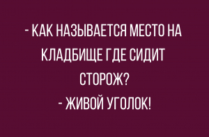 - Ой, а у нас тут такое было. Мужика притащили хоронить на кладбище, а он раз! садится в гробу: дескать оп-па! А я живой! Что тут началось. Все радуются, смеются, хлопушки взрывают, кто-то шарики веселые притащил, жена от радости плачет… В общем, еле закопали.