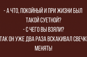 - Итак, по вашей просьбе я записал в вашем завещании, чтобы вас кремировали, а прах развеяли над торговым центром. Только я не пойму, зачем вам это?