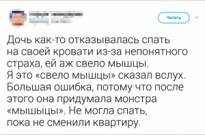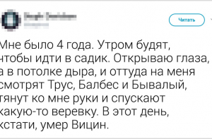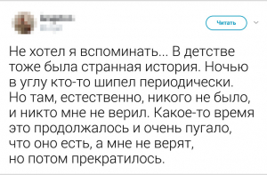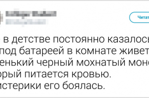 Наверняка каждый из нас в детстве чего-то боялся. Кого-то пугали «тетеньки из телевизора», кто-то лил слезы из-за выдуманных персонажей, которых никто, кроме самого ребенка, не видел, ну а некоторые испытывали страх перед черными чудовищами, которые жили под батареями. Так вот, пользователь твиттера под ником Генси создал тред, посвященный детским страхам и мистическим вещам, происходившим с маленькими фантазерами. Нужно сказать, что он собрал тысячи лайков и откликов.