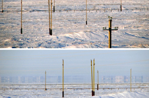Полярные ночь, день и сияние - не все сюрпризы, которые готовит Север. Это фото сделано на чистой местности, на расстоянии в 300 км от которой нет никаких городов. Температура воздуха составляет −50 °C.
