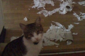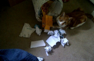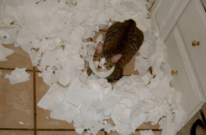 Этот кот нашел достойное применение всем ненужным бумажкам в доме
