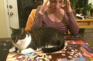 Естественно, он подождал, пока хозяйка соберет пазл полностью