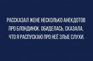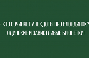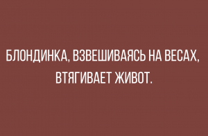 Письмо матери-блондинки своей дочери-блондинке: «Здравствуй, дорогая доченька! Если ты получишь это письмо, значит, оно до тебя дошло. Если же нет, то дай мне знать, и я напишу тебе ещe раз. Я пишу медленно, потому что я знаю, что ты не очень быстро читаешь. Погода у нас хорошая. На прошлой неделе дождь шел всего два раза: в начале недели, 3 дня, и ближе к концу, в течение 4 дней. Кстати, насчет пальтишка, которое ты хотела, дядя Вася сказал, что если пересылать его с этими литыми пуговицами, то это выйдет слишком дорого по весу, поэтому я их отрезала. Пришей их обратно, я положила их в правый кармашек. Твой папа нашeл новую работу. Под ним 500 человек! Он косит траву на кладбище. Твоя сестра Настя недавно вышла замуж, и ждет малыша. Мы не знаем, какого он пола, поэтому пока что не могу тебе сказать, будешь ли ты дядей или тeтей. Если это девочка, то она хочет еe назвать, как меня. Немного странное решение, назвать свою дочку Мама. С твоим братом Толей недавно случился казус: он закрыл свою машину, а ключи оставил внутри. Ему пришлось вернуться домой пешком ( 10 километров!), чтобы взять второй комплект ключей, и выпустить нас из машины. Если ты вдруг встретишь свою кузину Лилю, то передай ей от меня привет. Eсли ты еe не встретишь, то ничего ей не говори. Твоя мама.