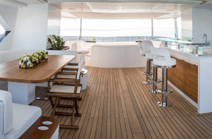 Особенностью яхты является большое панорамное остекление, что позволяет любоваться морским пейзажем.