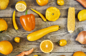 Оранжевые и желтые фрукты и овощи