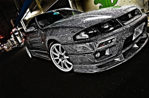 Жена владельца автомобиля талантливая художница. Она предложила мужу закрасить небольшие царапины узорами, выполненными черным маркером - грифонаж. Результат оценила вся семья, поэтому художнице дали добро обновить всю машину. Около 100 часов работ и необычный тюнинг был завершен. Уникальный автомобиль несомненно привлекает внимание окружающих.