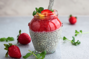 Банан + клубника + кокосовое молоко + семена чиа Плавно переходим к более неожиданным сочетаниям. Кокосовое молоко послужит отличной заменой обычному и придаст интересный вкусовой оттенок, а семена чиа сделают смузи еще более полезным.