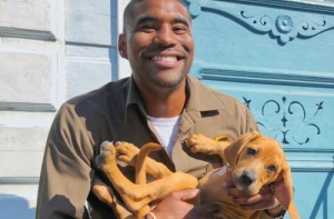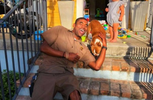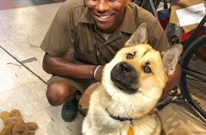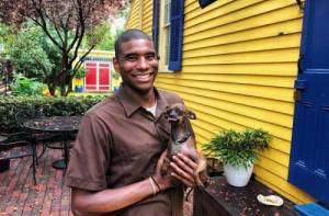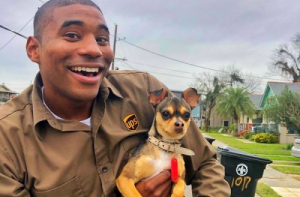 ) из Нового Орлеана, штат Луизиана, который размещает в своём аккаунте в Instagram совместные фотографии с питомцами клиентов компании, которые его радостно встречают.
