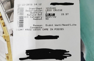 10. Клиент вернул товар с комментарием: «Не знал, что LEGO продается в деталях»