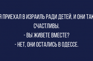 - Если вы из налоговой, то папа пошёл собирать бутылки, шоб нас прокормить. Если вы Яков Моисеевич, которому папа должен денег, то папу два дня назад похоронили. А если вы Марк Ефимович, который должен папе, то он таки дома.