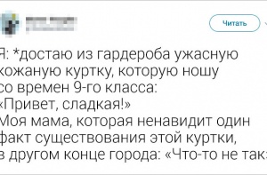 «Моя мама купила своему псу свитер. Когда я спросила, почему именно розовый, она сказала: „Он и так достаточно уверен в своей мужественности“»