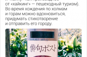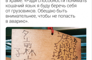Забыла вчера кофту с порванным карманом на станции, когда перекладывала вещи из рюкзака. Возвращаюсь - нет ее. «Украли, - думаю. - Да, и в Японии обычные недорогие вещи так просто крадут». Утром прихожу - лежит на скамейке с зашитым карманом и запиской: «Будьте внимательнее!» Собираю гениальные мотивации для поддержания чистоты в японских туалетах: угрожают тем, что «туалетный бог может наблюдать за тобой», «в грязном туалете даже не порыдаешь, когда хочется плакать», «нельзя холодно относиться к туалету, даже если его стульчак был холоден к тебе». О местном колорите и причинах задержки поездов: - Токио: самоубийство, человек упал на железнодорожные пути из-за тяжелого гриппа, самоубийство. - Саппоро: снежный буран, олень опять сидит на путях, из-за низкой температуры отмерз и упал светофор, медведь опять сидит на путях.