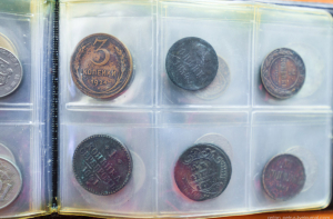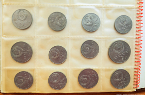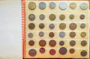 20. Еще одна серьезная коллекция - монеты. Нумизмат из меня был так себе, хотя монет в коллекции довольно много было. Включая естественно юбилейные рубли СССР. Альбом тоже по наследству достался, тоже советский. Но качество так себе - пластик на страницах такой плотный и мутный, что монет ни черта не видно.