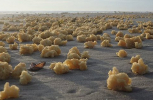 Фото: Live ScienceБереговая линия Ла-Манша огибает оживленную судоходную линию. Часто на здешних пляжах находят странные вещи, но ничто не было таким необычным, как маслянистые шары, обнаруженные в 2017 году. Сотни желтых сгустков были разбросаны на километры вдоль пляжей северной Франции. От них исходил слабый запах парафина, но парафин тает на солнце, а эти шары не таяли. Власти опубликовали заявление о том, что похожие на губку шары, вероятно, не опасны. Однако они не могли на вскидку сказать, из чего они состоят. Зеленые активисты были более осторожными и призывали людей не трогать шары.Учитывая, что тонны такого мусора покрывали целые километры береговой линии, некоторые пляжники, несомненно, прикасались к этой дряни. К счастью, никаких отчетов из морга не поступало. Единственным ключом к разгадке было то, что эти шары являются производным продуктов нефти. Одна из теорий предполагала, что это была разновидность масла и смазки лодки, которая затвердевает при соприкосновении с холодной морской водой.2. Множество инвазивной жизни